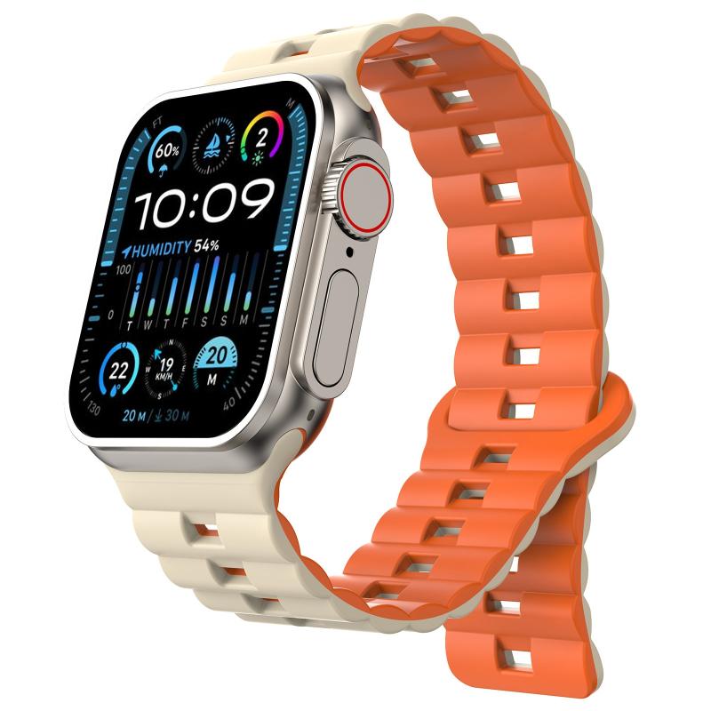 Για Apple Watch Ultra 2 49mm Αντίστροφος Αγκώνας Διχρωμικό Μαγνητικό Λουράκι Σιλικόνης (Γκρι+Πορτοκαλί)