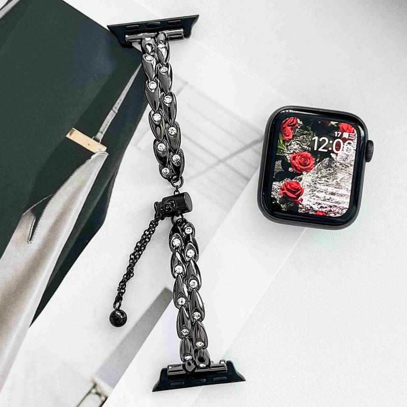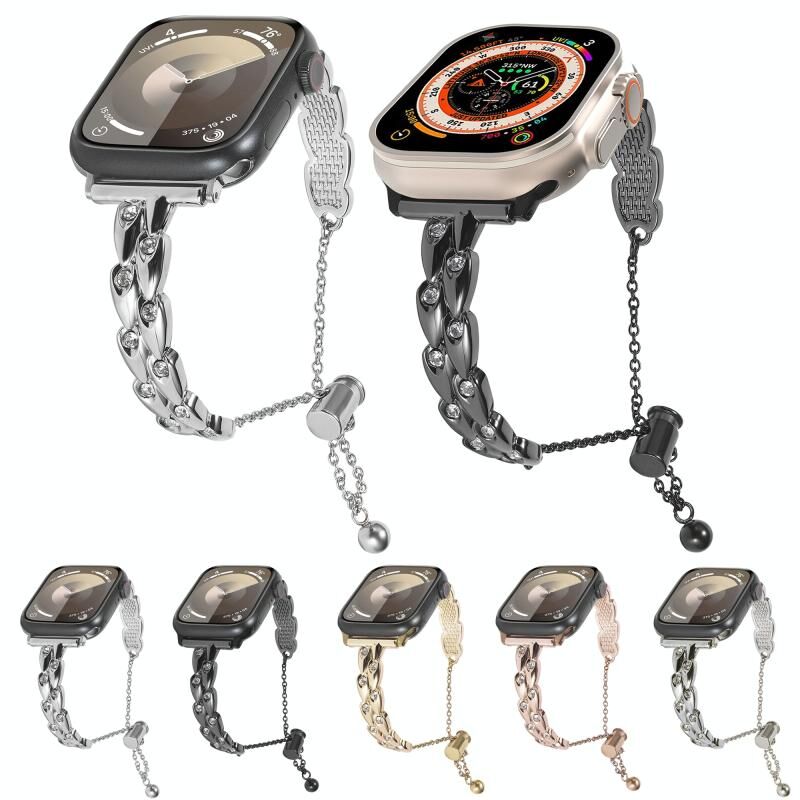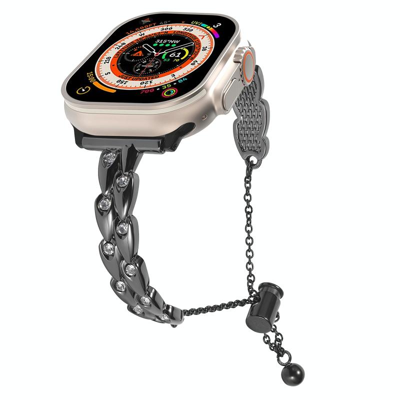 For Apple Watch Ultra 2 49mm Rhinestone Peacock Metal Bracelet Watch Band(Black)