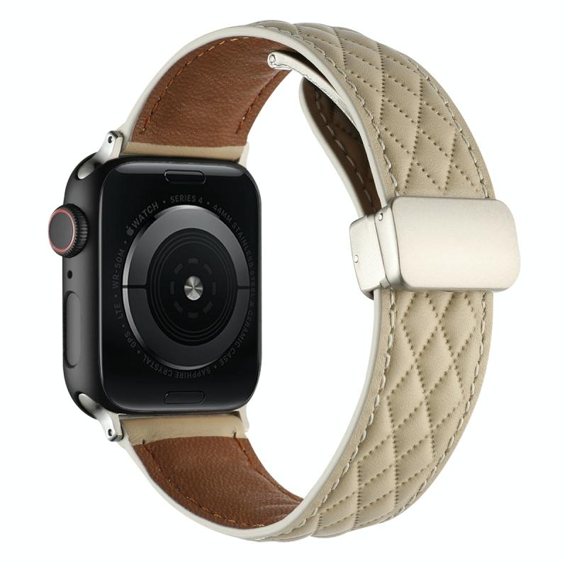 Για Apple Watch Ultra 2 49mm Λουρί Ρολογιού από Δέρμα με Μαγνητική Αγκράφα Δίπλωσης σε Σχήμα Ρόμβου (Χρώμα Starlight)