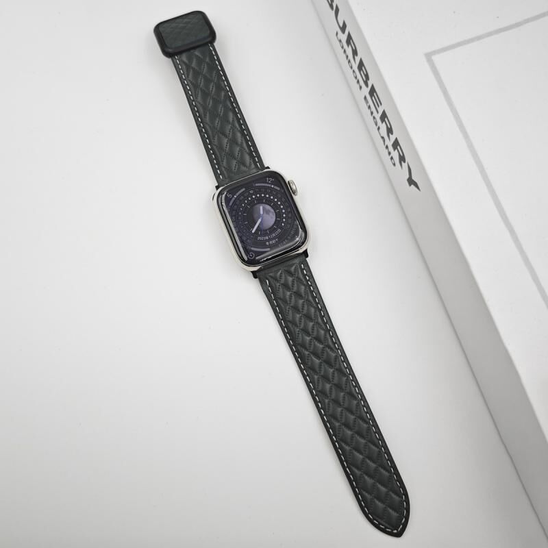Για Apple Watch Ultra 2 49mm Ρομβοειδές Μοτίβο Μαγνητικό Δερμάτινο Λουρί με Αγκράφα Τετραγώνου (Μαύρο)