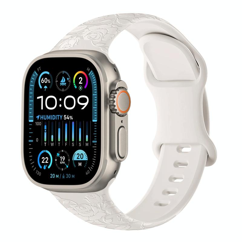 For Apple Watch Ultra 2 49mm Rose Embossed Silicone Watch Band(Starlight)
