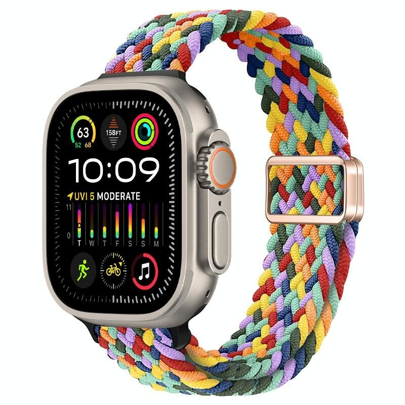 Για Apple Watch Ultra 2 49mm Λεπτή Μαγνητική Αγκράφα Νάιλον Πλεκτή Ζώνη Ρολογιού (Πολύχρωμο Μοτίβο W)