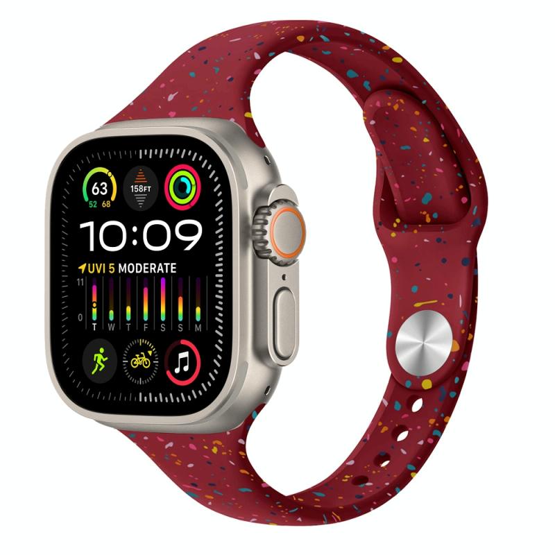 For Apple Watch Ultra 2 49mm Slim Style Colorful Dots Silicone Watch Band(Wine Red)