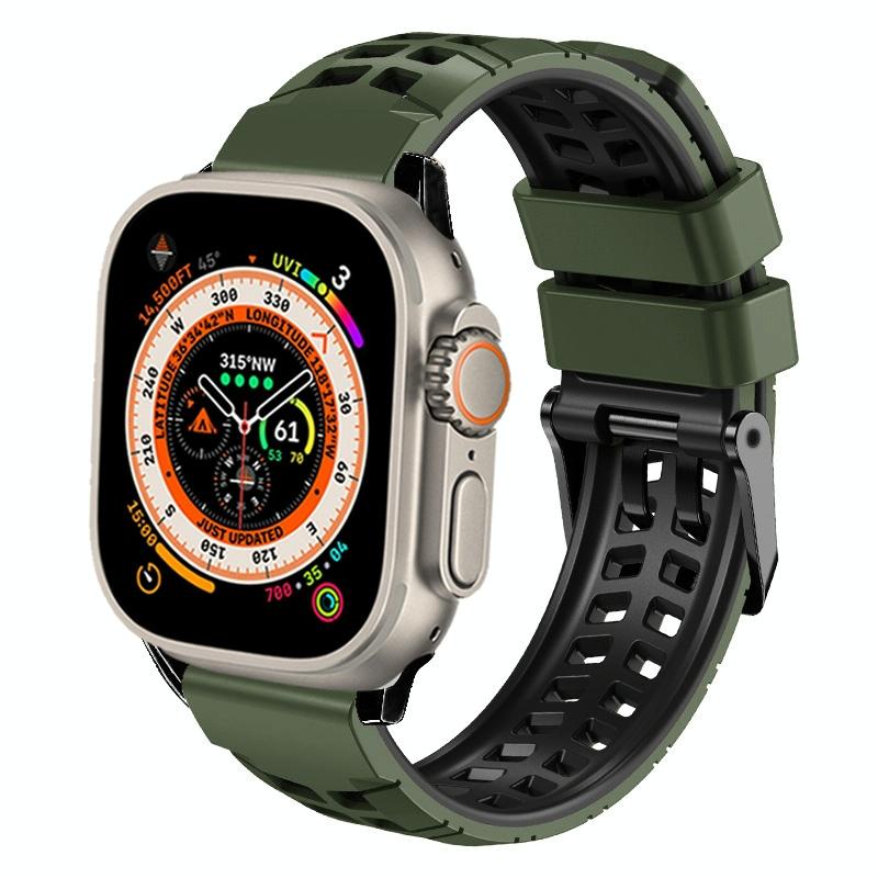Για Apple Watch Ultra 2 49mm Λουρί Σιλικόνης με Αγκράφα Διπλής Σειράς Twill (Πράσινο Στρατού - Μαύρο)
