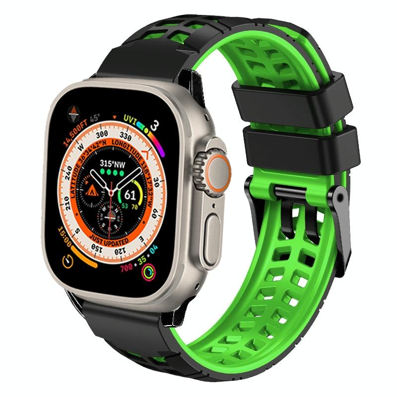 Για Apple Watch Ultra 2 49mm Λουρί Σιλικόνης με Αγκράφα Διπλής Σειράς Twill (Μαύρο πράσινο)