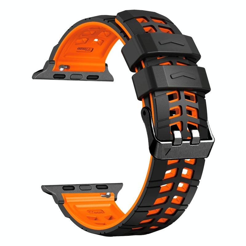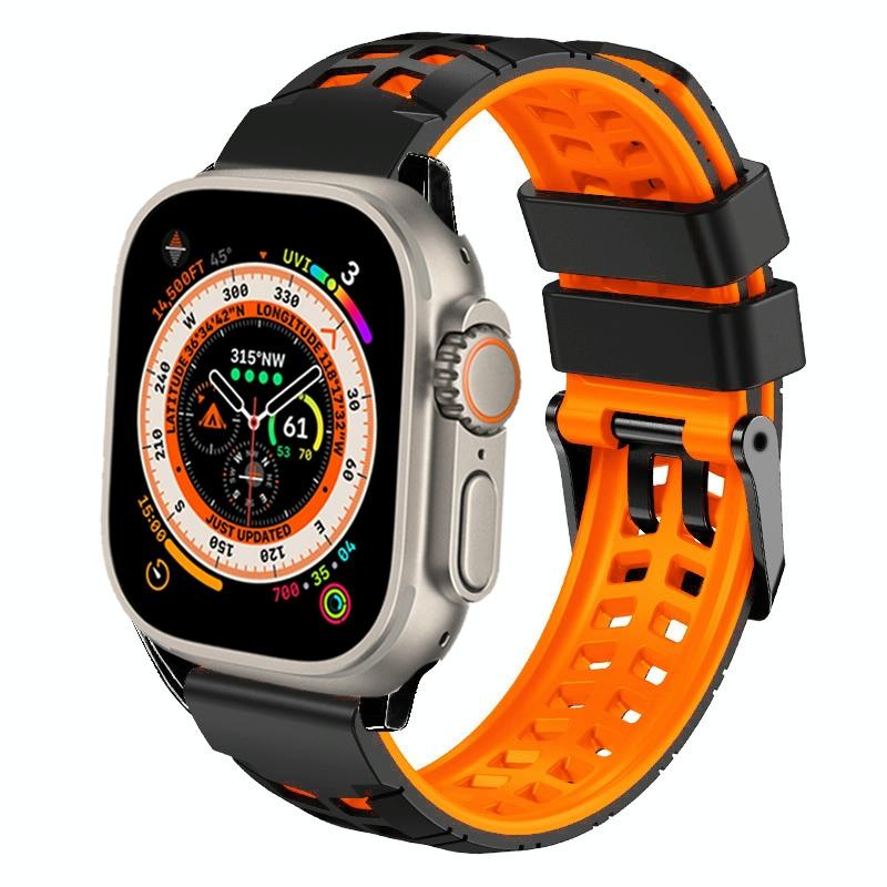 Για Apple Watch Ultra 2 49mm Λουρί Σιλικόνης με Αγκράφα Διπλής Σειράς Twill (Μαύρο Πορτοκαλί)