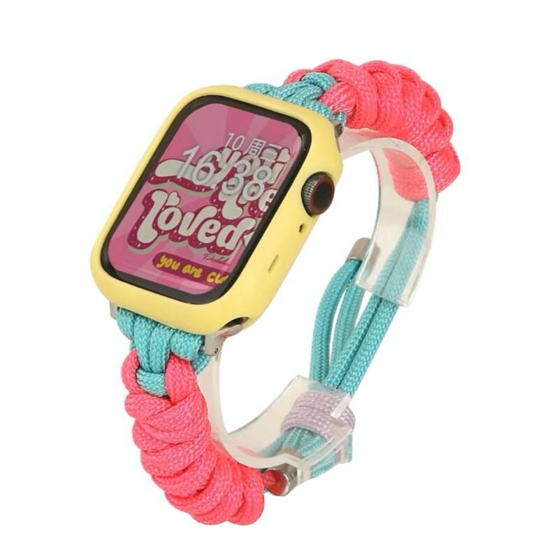 Για Apple Watch Ultra 2 49mm Λουρί ρολογιού από νάιλον με πλεκτή περιστροφή (Κόκκινο Ρόδι, Μέντα)