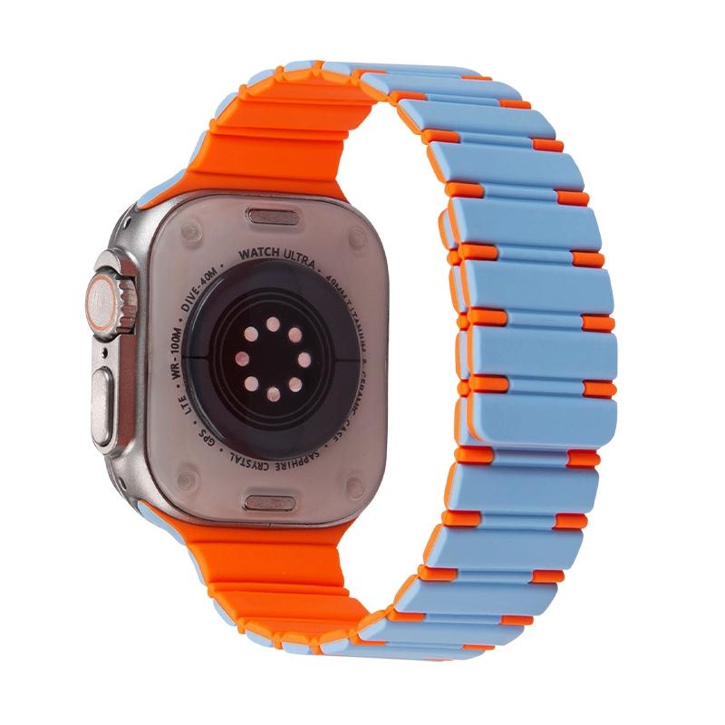 Λουράκι ρολογιού Apple Watch Ultra 2 49mm, Διχρωμικό Μαγνητικό Σιλικόνης (Γαλάζια Ομίχλη Πορτοκαλί)