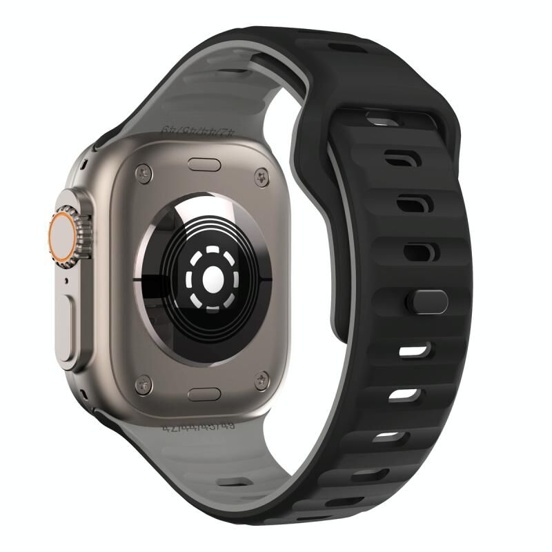 Για Apple Watch Ultra 2 49mm Λουρί Σιλικόνης με Αγκράφα Αντίστροφης Κλειδαριάς Υφής Κύματος (Μαύρο Γκρι)