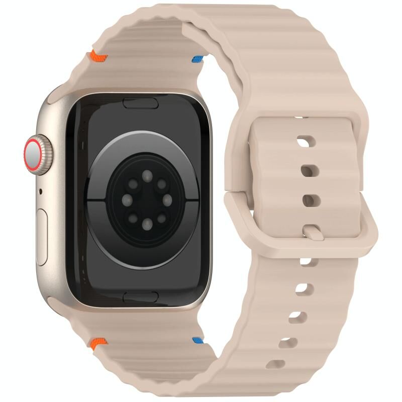 Για Apple Watch Ultra 2 49mm Λουρί Σιλικόνης με Ραφή Κυματιστής Υφής (Χρώμα Γαλακτώδες Τσάι)