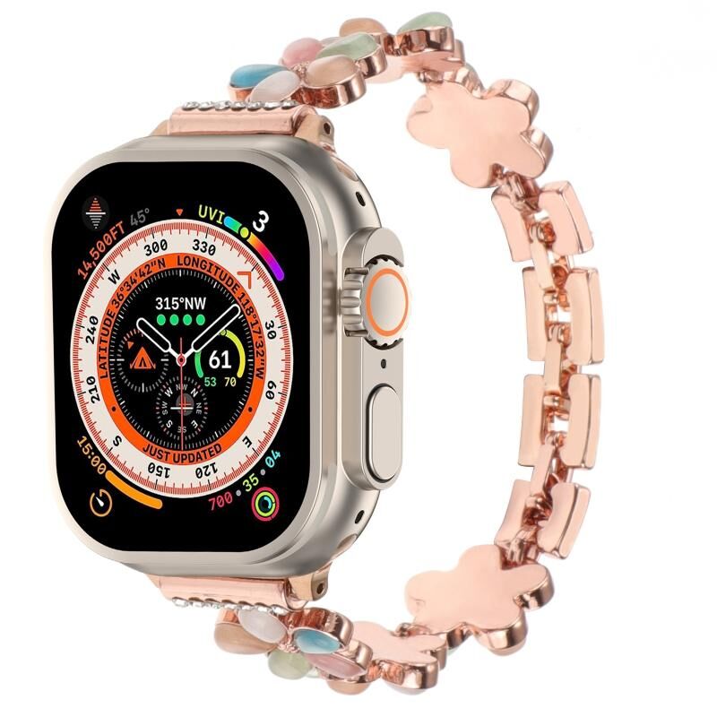 Για Apple Watch Ultra 49mm Λουρί ρολογιού αλυσίδα από κράμα ψευδαργύρου με 5 πέταλα λουλουδιού (Μαύρο)