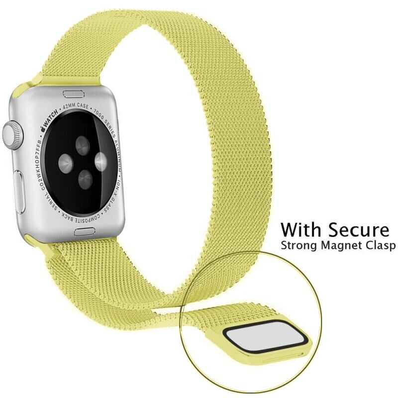 Για Apple Watch Ultra 49mm & Watch Ultra 2 49mm / Series 9 & 8 & 7 45mm / 6 & SE & 5 & 4 44mm / 3 & 2 & 1 42mm Μιλανέζικο Βρόχο Λουρί Ρολογιού από Μαγνητικό Ανοξείδωτο Ατσάλι (Κίτρινο)