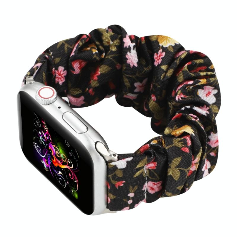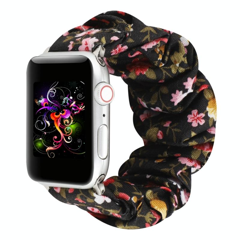 Για Apple Watch Ultra 49mm & Watch Ultra 2 49mm / Series 9 & 8 & 7 45mm / SE 3 & SE 2 & 6 & SE & 5 & 4 44mm / 3 & 2 & 1 42mm Υφασμάτινο + Λουρί Ρολογιού από Ανοξείδωτο Ατσάλι με Δακτύλιο Μαλλιών (Μικρό Λουλουδάτο)