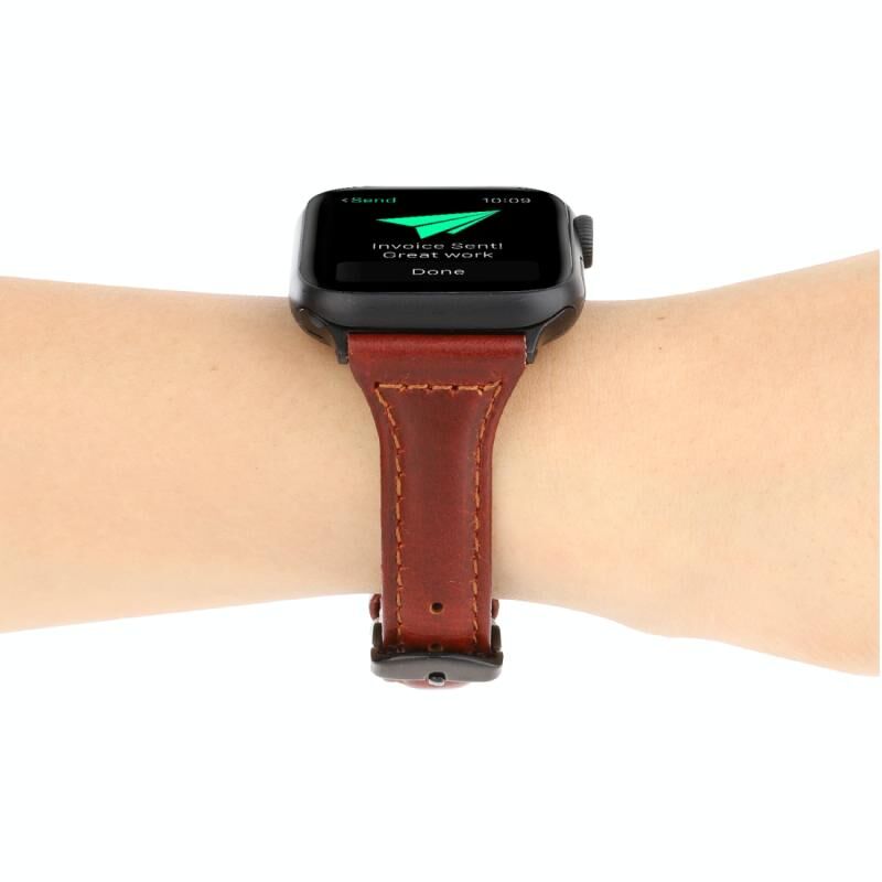 For Apple Watch Ultra 49mm&Watch Ultra 2 49mm / Series 9&8&7 45mm / SE 3&SE 2&6&SE&5&4 44mm / 3&2&1 42mm Crazy Horse Texture Genuine Leather Strap(Red Brown)
