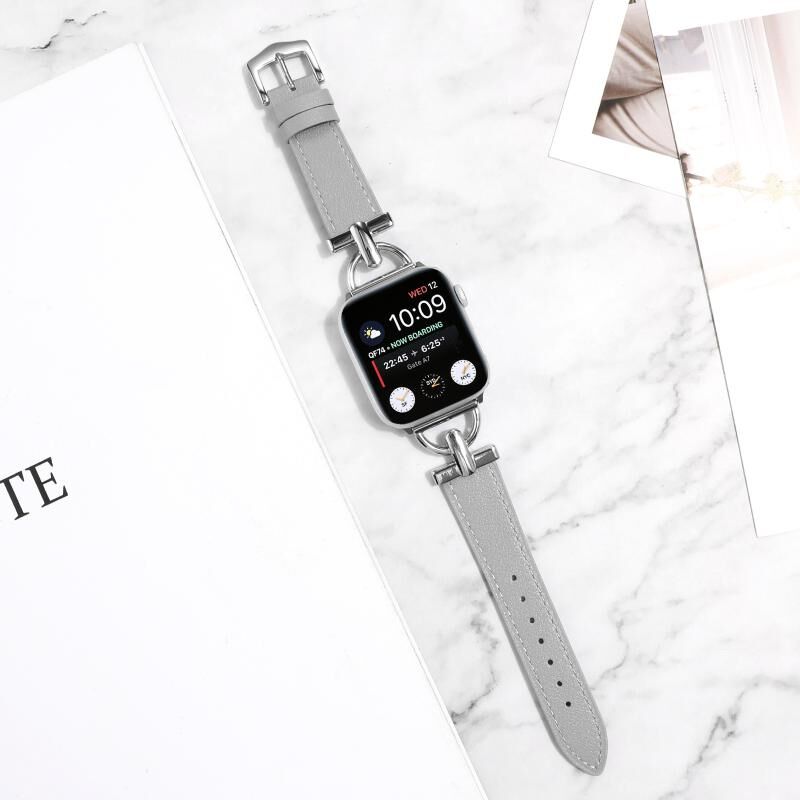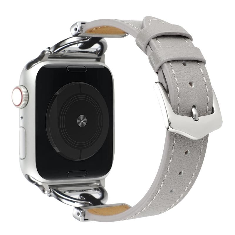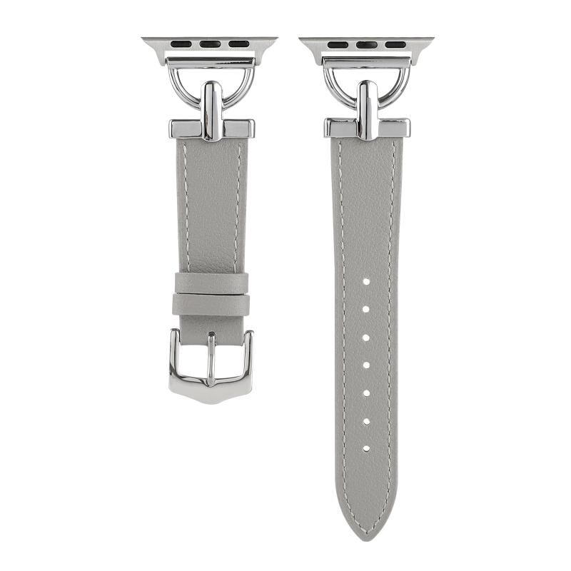 Για Apple Watch Ultra 49mm & Watch Ultra 2 49mm / Series 9 & 8 & 7 45mm / SE 3 & SE 2 & 6 & SE & 5 & 4 44mm / 3 & 2 & 1 42mm Λουρί ρολογιού από γνήσιο δέρμα με αγκράφα D (Γκρι)