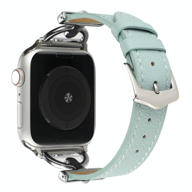 Για Apple Watch Ultra 49mm & Watch Ultra 2 49mm / Series 9 & 8 & 7 45mm / SE 3 & SE 2 & 6 & SE & 5 & 4 44mm / 3 & 2 & 1 42mm Λουρί ρολογιού από γνήσιο δέρμα με αγκράφα D (Ανοιχτό μπλε)