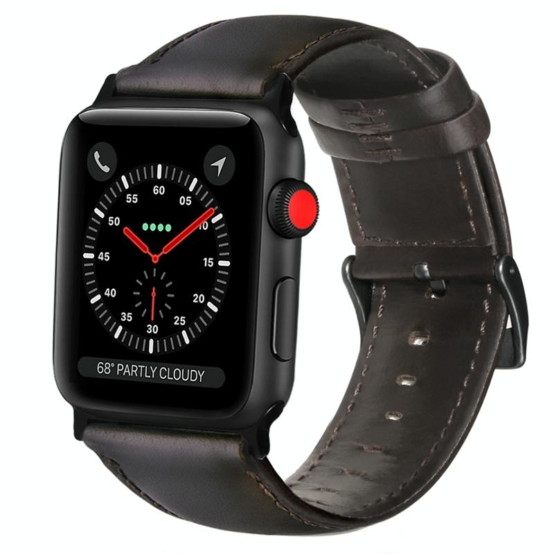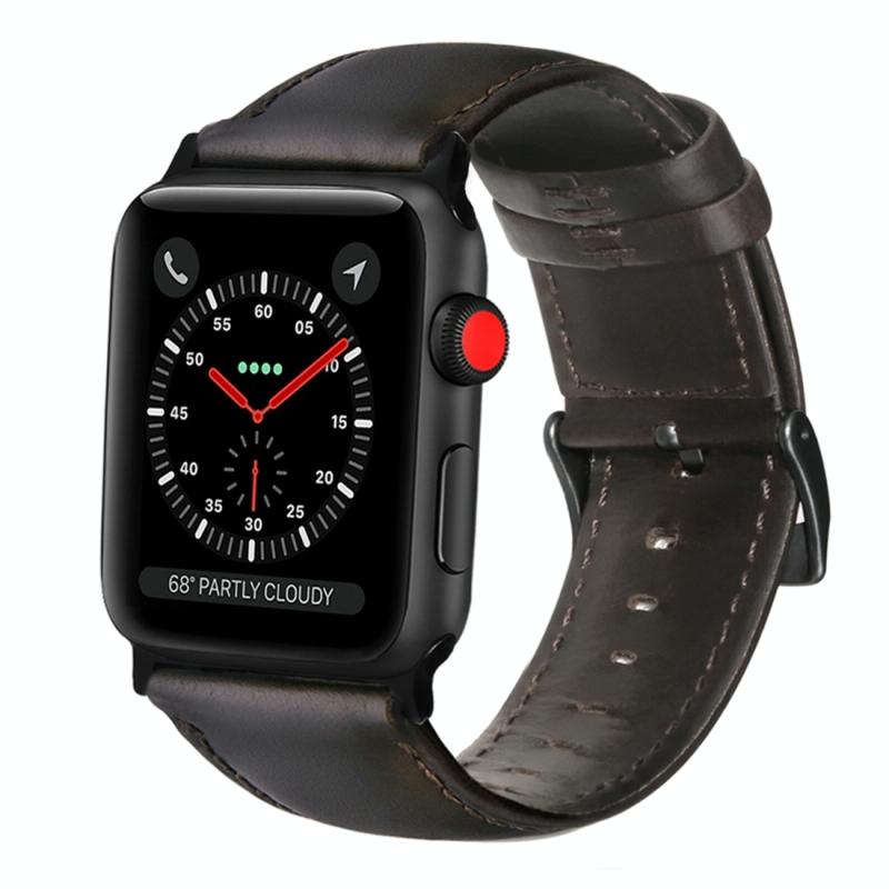 For Apple Watch Ultra 49mm&Watch Ultra 2 49mm / Series 9&8&7 45mm / SE 3&SE 2&6&SE&5&4 44mm / 3&2&1 42mm Oil Wax Genuine Leather Strap Watch Band(Dark Brown)