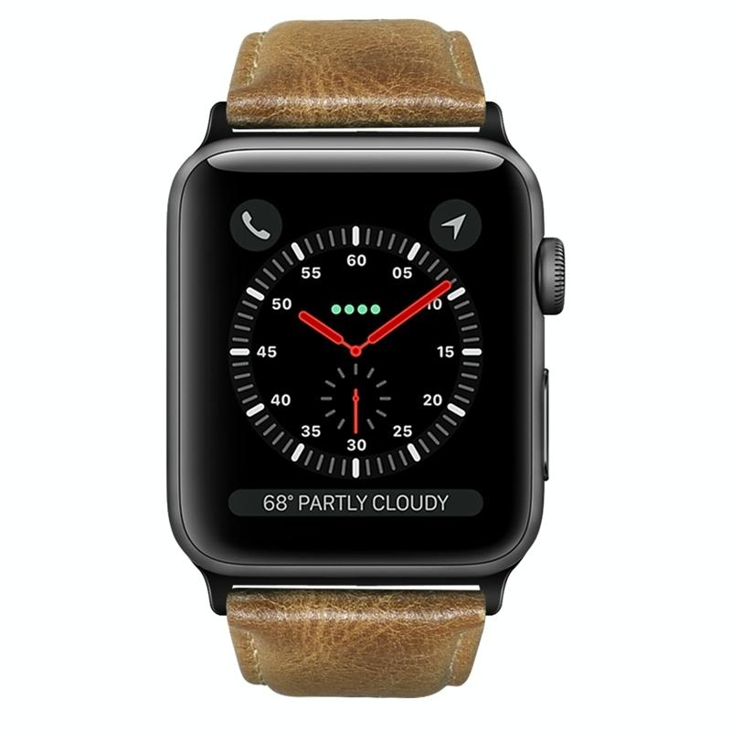 For Apple Watch Ultra 49mm&Watch Ultra 2 49mm / Series 9&8&7 45mm / SE 3&SE 2&6&SE&5&4 44mm / 3&2&1 42mm Oil Wax Genuine Leather Strap Watch Band(Yellow Brown)