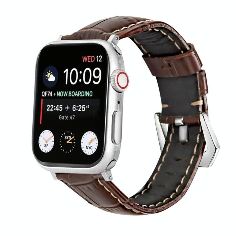 Για Apple Watch Ultra 49mm & Watch Ultra 2 49mm / Series 9 & 8 & 7 45mm / SE 3 & SE 2 & 6 & SE & 5 & 4 44mm / 3 & 2 & 1 42mm Ασημένια Αγκράφα Αυθεντικό Δερμάτινο Λουρί Ρολογιού (Κροκόδειλος Μαύρο)