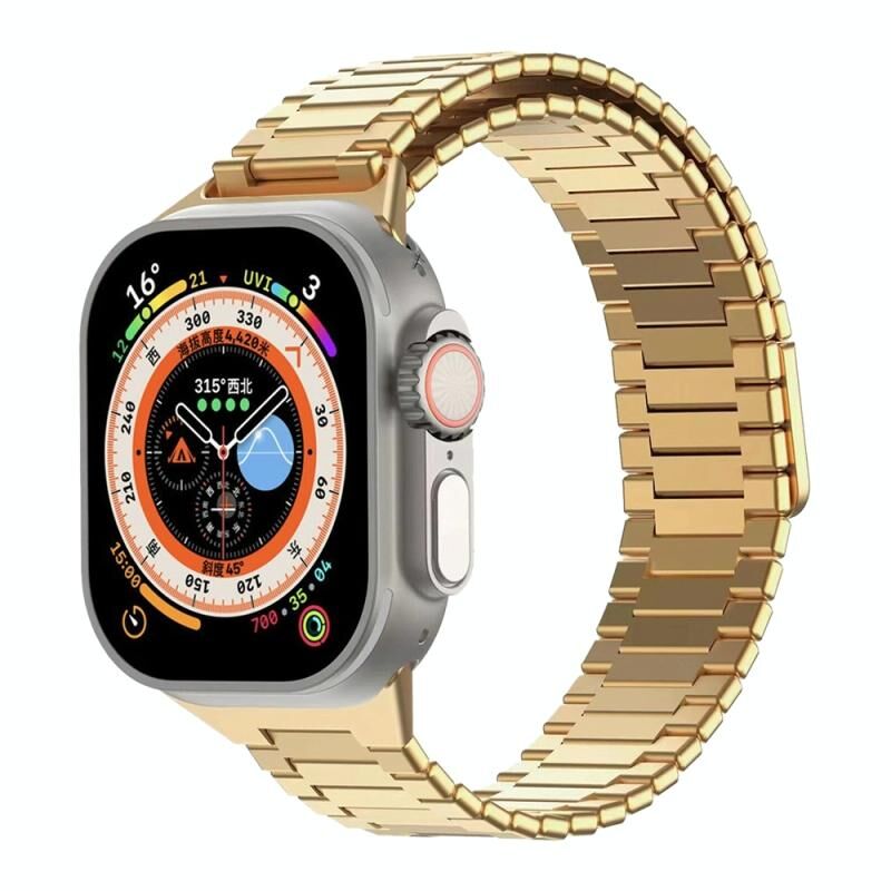 Για Apple Watch Ultra 49mm Μπαμπού Μαγνητικό Μεταλλικό Λουράκι Ανοξείδωτου Ατσαλιού (Χρυσός)