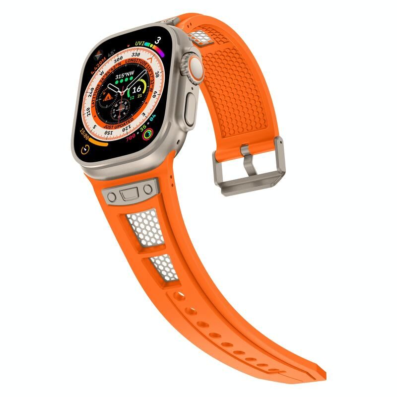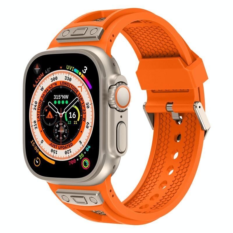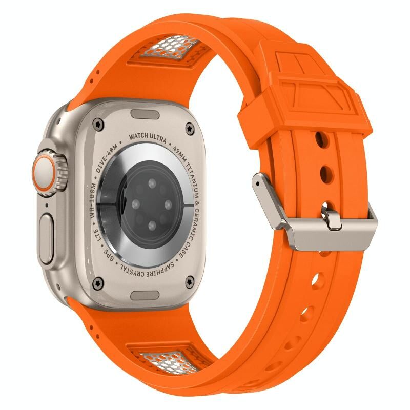 Για Apple Watch Ultra 49mm Αναπνεύσιμος ιμάντας ρολογιού από ανοξείδωτο ατσάλι Mesh TPU (Πορτοκαλί Τιτάνιο)