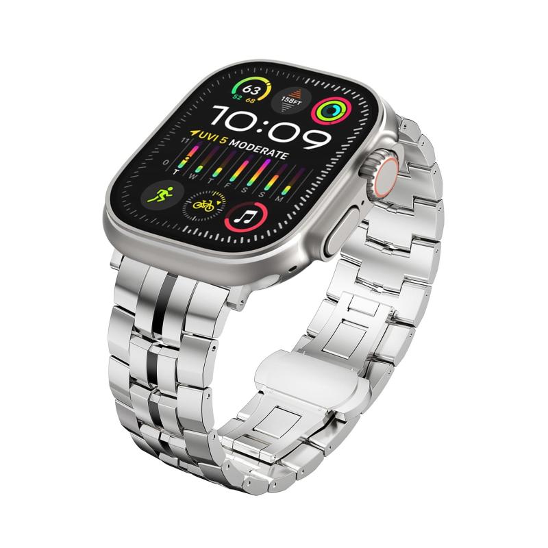 For Apple Watch Ultra 49mm Butterfly Buckle 5-Beads Metal Watch Band(Silver Black)