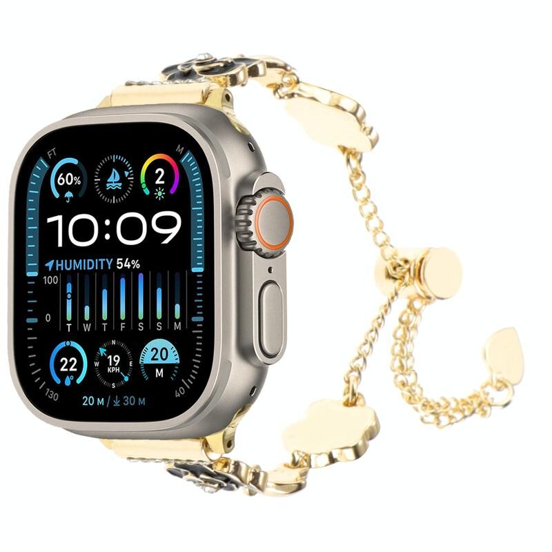 For Apple Watch Ultra 49mm Camellia Metal Chain Bracelet Watch Band(Black Gold)