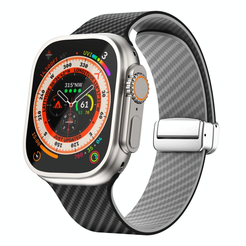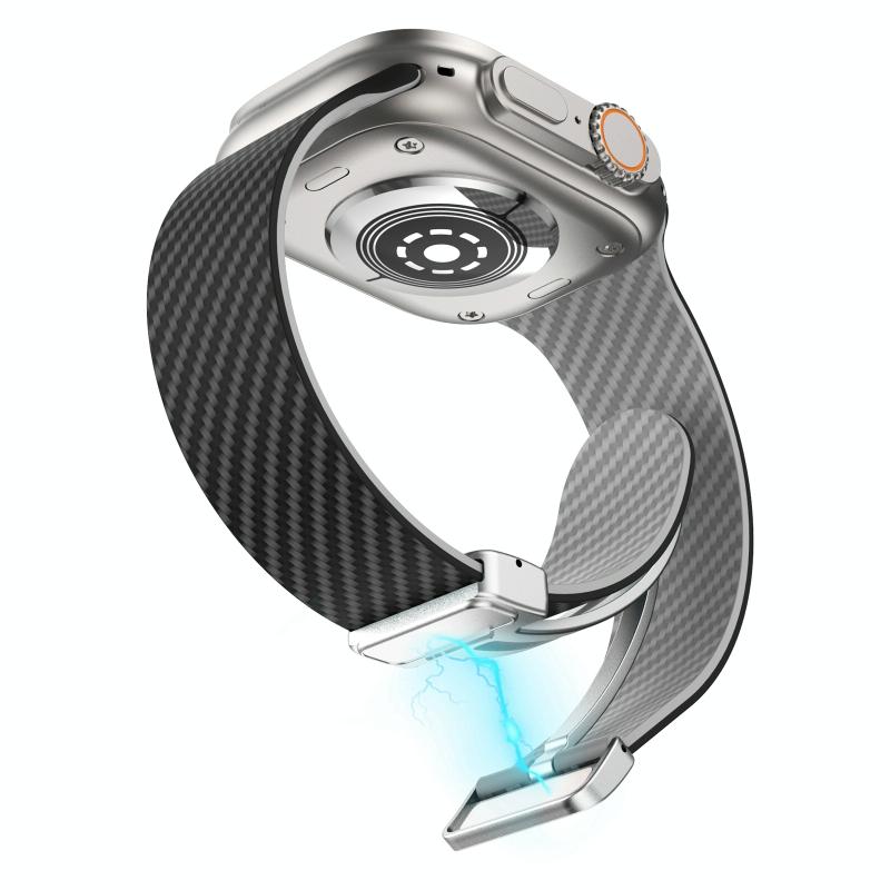 Για Apple Watch Ultra 49mm Λουρί ρολογιού από ανθρακονήματα με μαγνητική αγκράφα Silver (Μαύρο Γκρι)