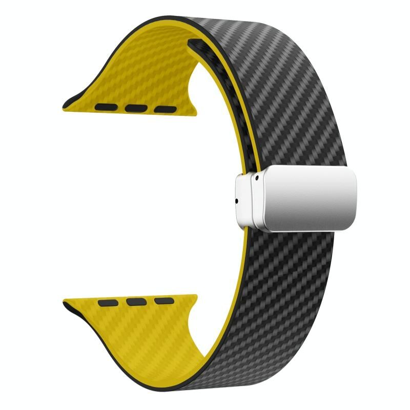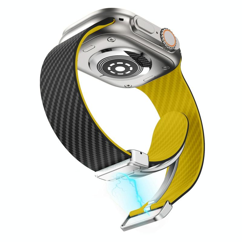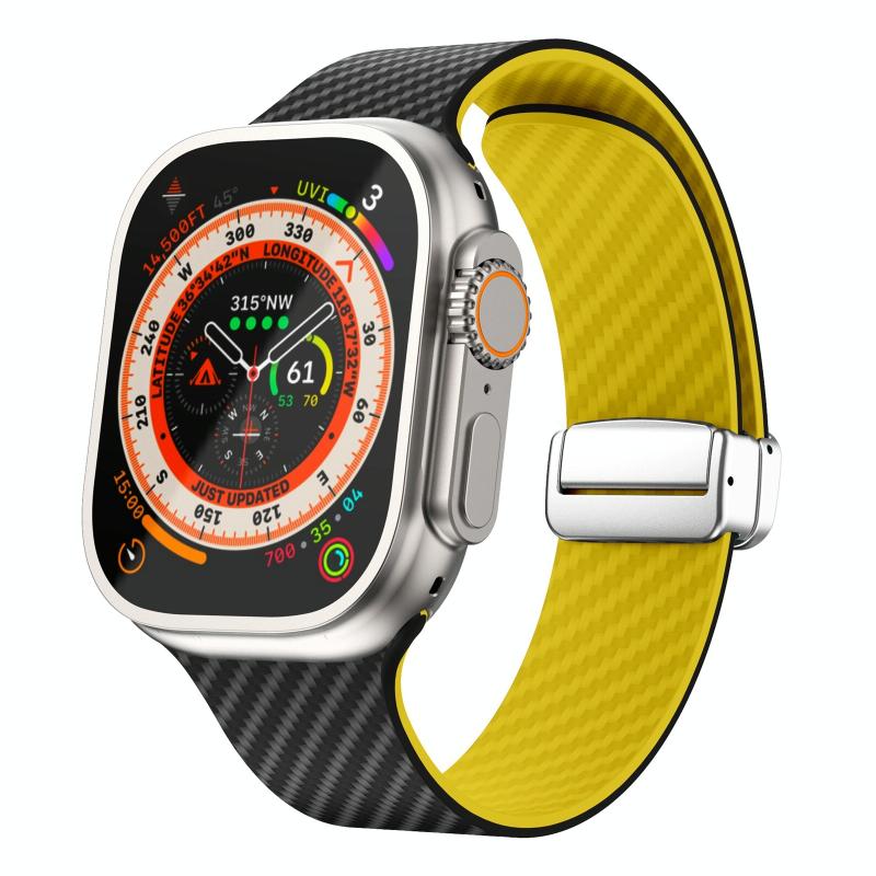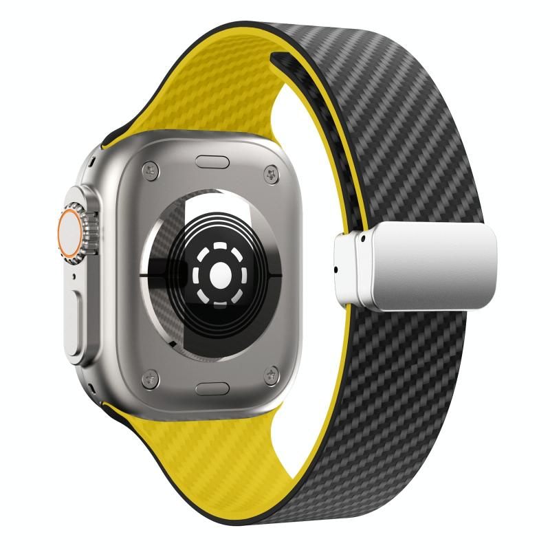 Για Apple Watch Ultra 49mm Λουρί ρολογιού από ανθρακονήματα με μαγνητική αγκράφα Silver (Μαύρο Κίτρινο)