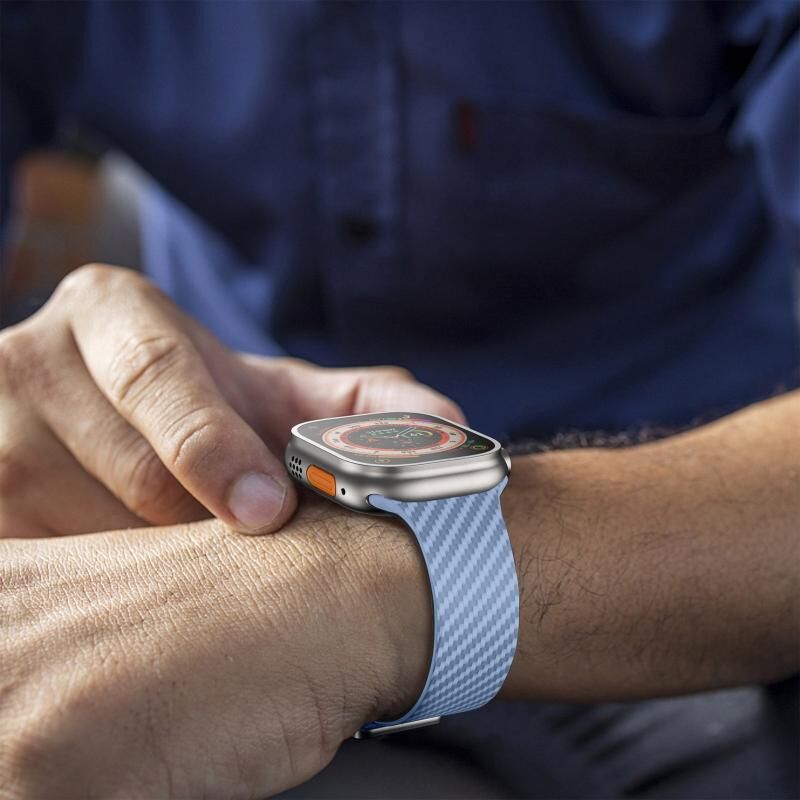 Για Apple Watch Ultra 49mm Λουρί ρολογιού από ανθρακονήματα με μαγνητική αγκράφα Silver (Ανοιχτό Γαλάζιο Μαύρο)