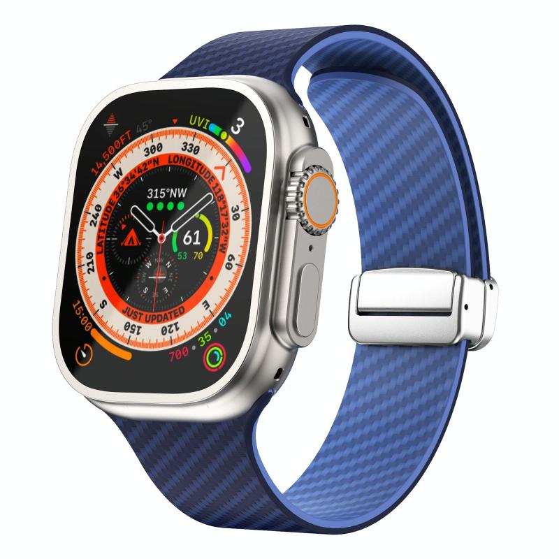 Για Apple Watch Ultra 49mm Λουρί ρολογιού από ανθρακονήματα Μαγνητική πόκα Black (Βασιλικό Μπλε Λευκό)