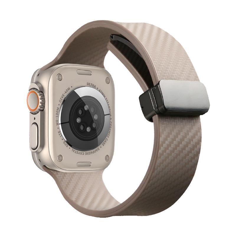 Για Apple Watch Ultra 49mm Λουρί Σιλικόνης με Μαγνητικό Κούμπωμα σε Σχέδιο Ίνας Άνθρακα (Απρικοτί Χρώμα)