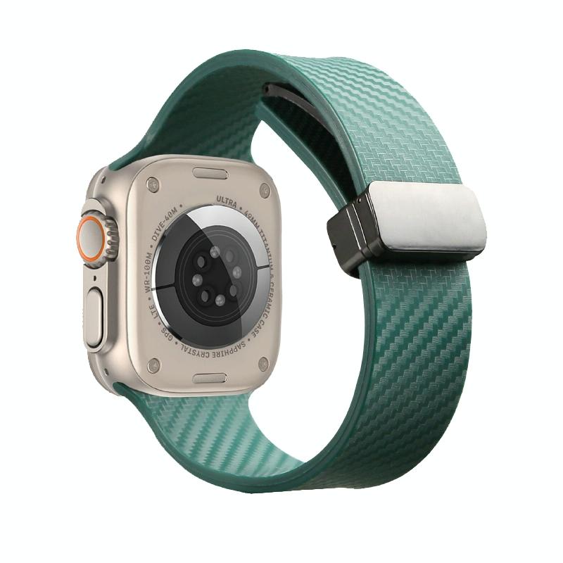 Για Apple Watch Ultra 49mm Λουρί Σιλικόνης με Μαγνητικό Κούμπωμα σε Σχέδιο Ίνας Άνθρακα (Σκούρο πράσινο)