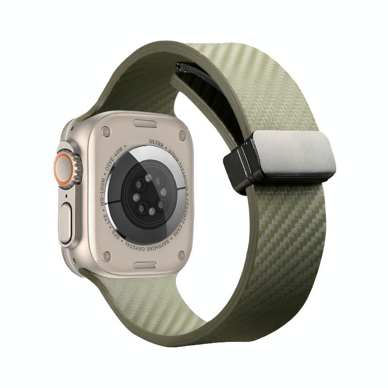 Για Apple Watch Ultra 49mm Λουρί Σιλικόνης με Μαγνητικό Κούμπωμα σε Σχέδιο Ίνας Άνθρακα (πράσινο)