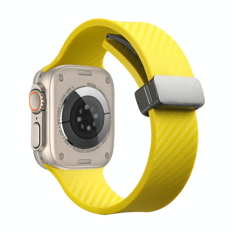Για Apple Watch Ultra 49mm Λουρί Σιλικόνης με Μαγνητικό Κούμπωμα σε Σχέδιο Ίνας Άνθρακα (Κίτρινο)