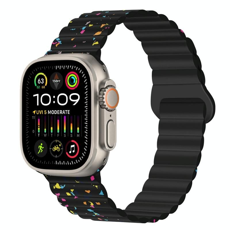 Για Apple Watch Ultra 49mm Έγχρωμες Κουκκίδες Μαγνητικό Λουράκι Σιλικόνης (Μαύρο)