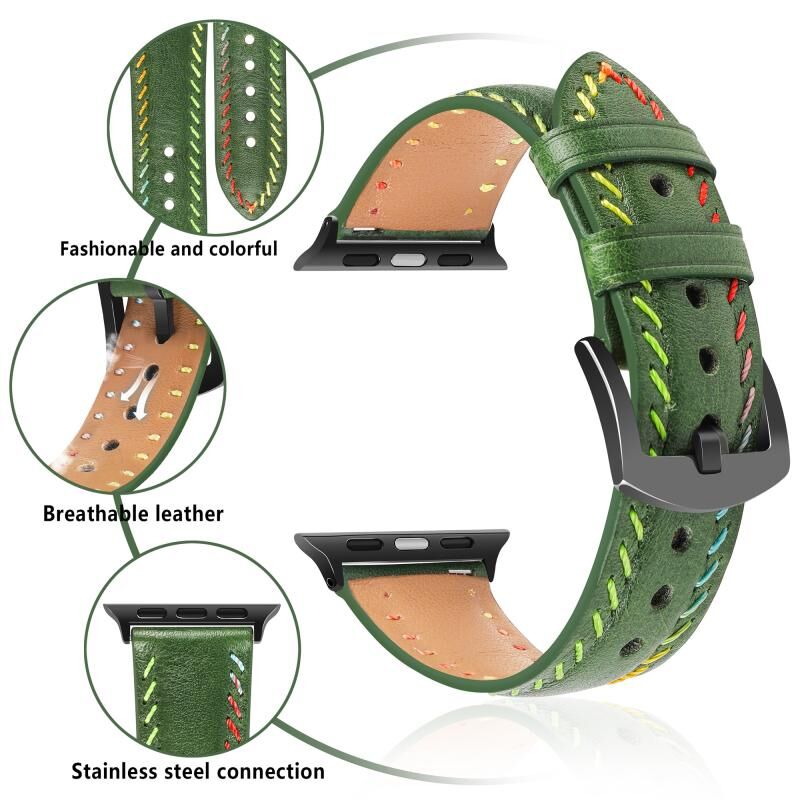 Για Apple Watch Ultra 49mm Έγχρωμο Δερμάτινο Λουρί Ραφής (πράσινο)