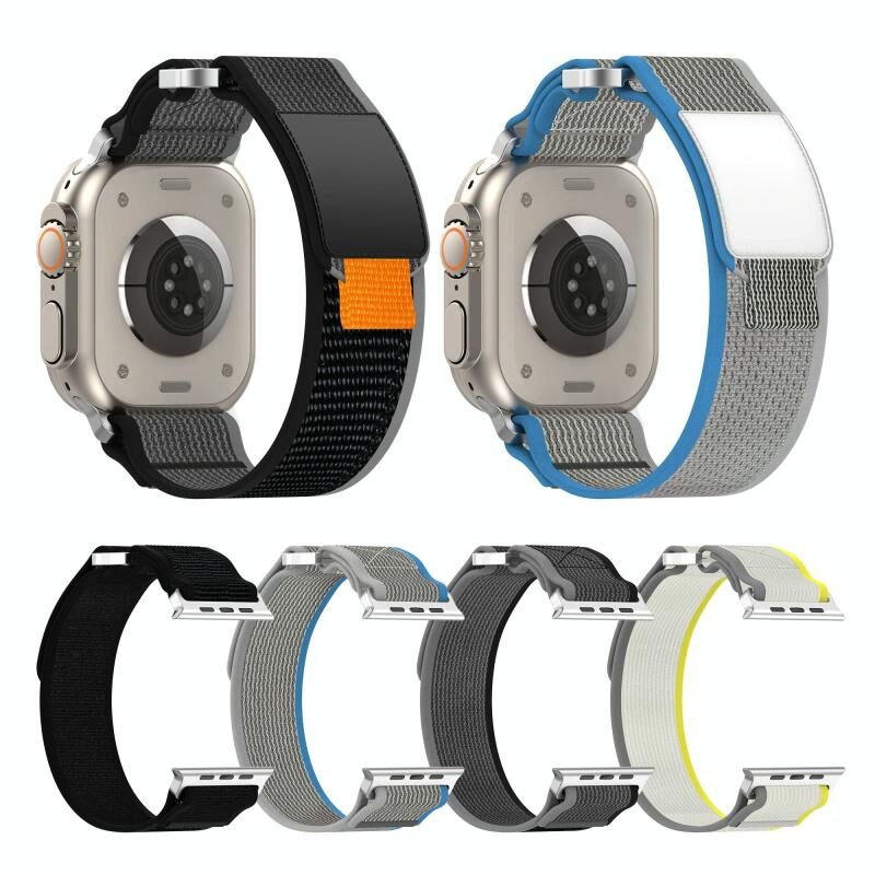 Για Apple Watch Ultra 49mm Διπλό Λουρί Velcro από Νάιλον (Μαύρο + Γκρι)