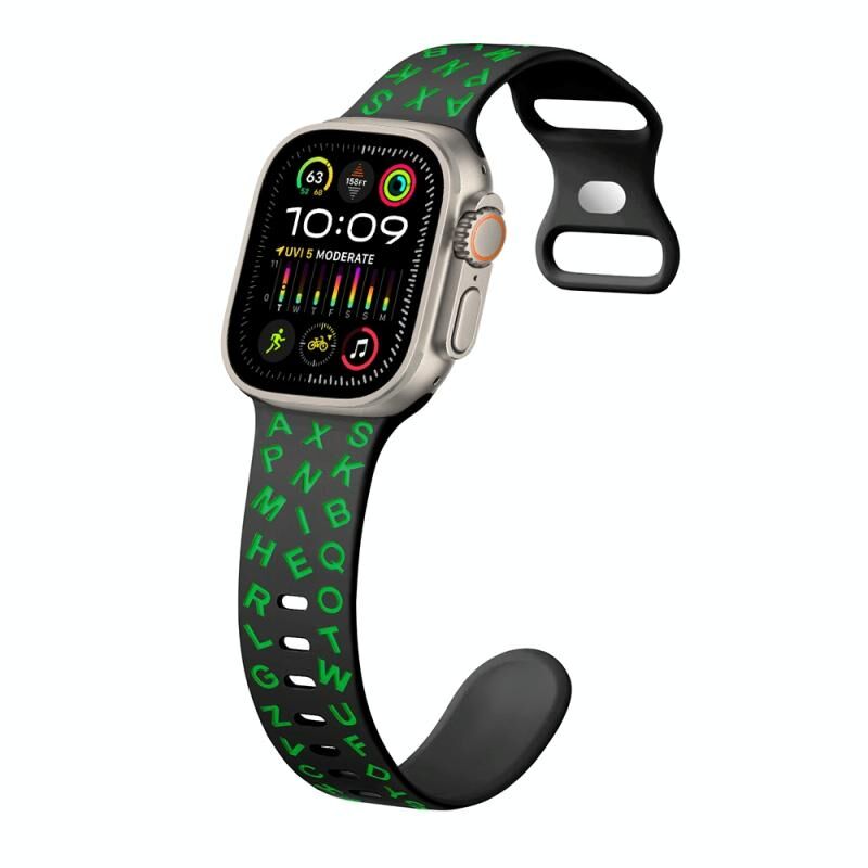 Για Apple Watch Ultra 49mm Λουράκι Σιλικόνης με Αγκράφα Πεταλούδας σε Αγγλικά Γράμματα (Λευκό Μαύρο)