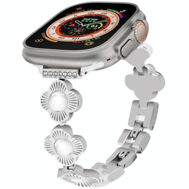 Για Apple Watch Ultra 49mm Λουράκι ρολογιού από μεταλλική αλυσίδα με γρήγορη απελευθέρωση Τριφύλλι (Ασημί)
