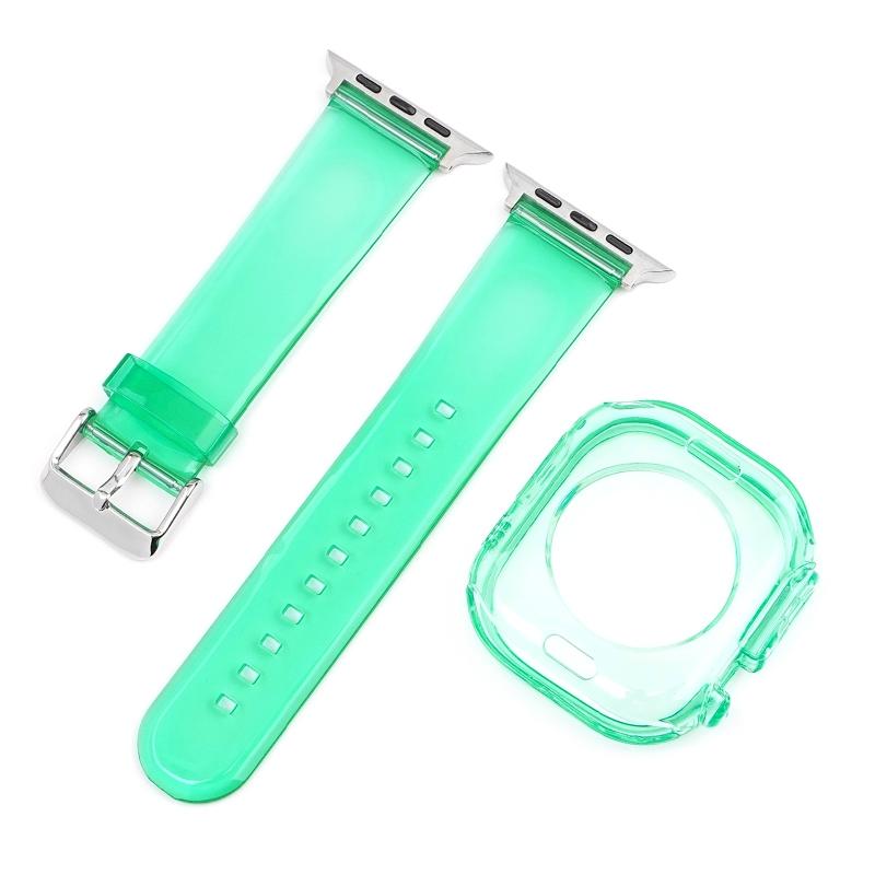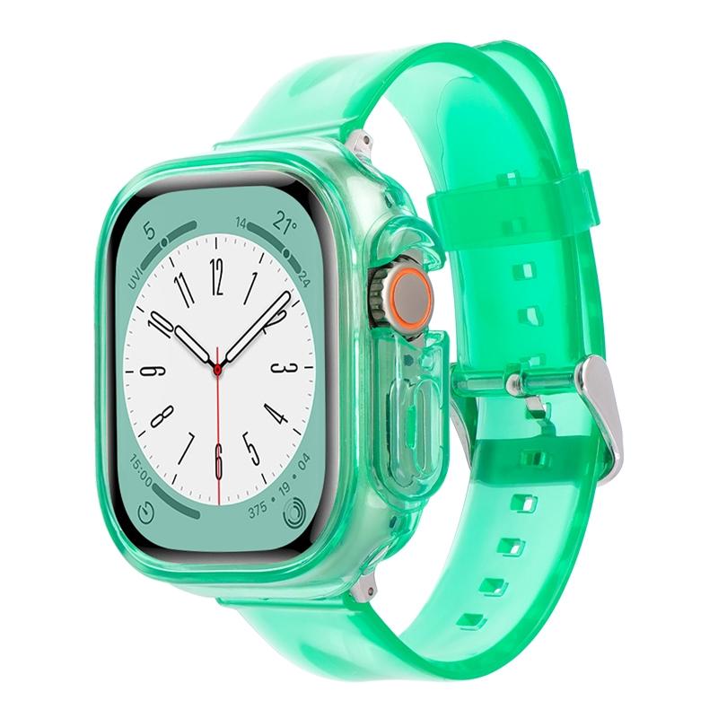 For Apple Watch Ultra 49mm Glacier Jelly Clear TPU Case Watch Band(Blue Green)