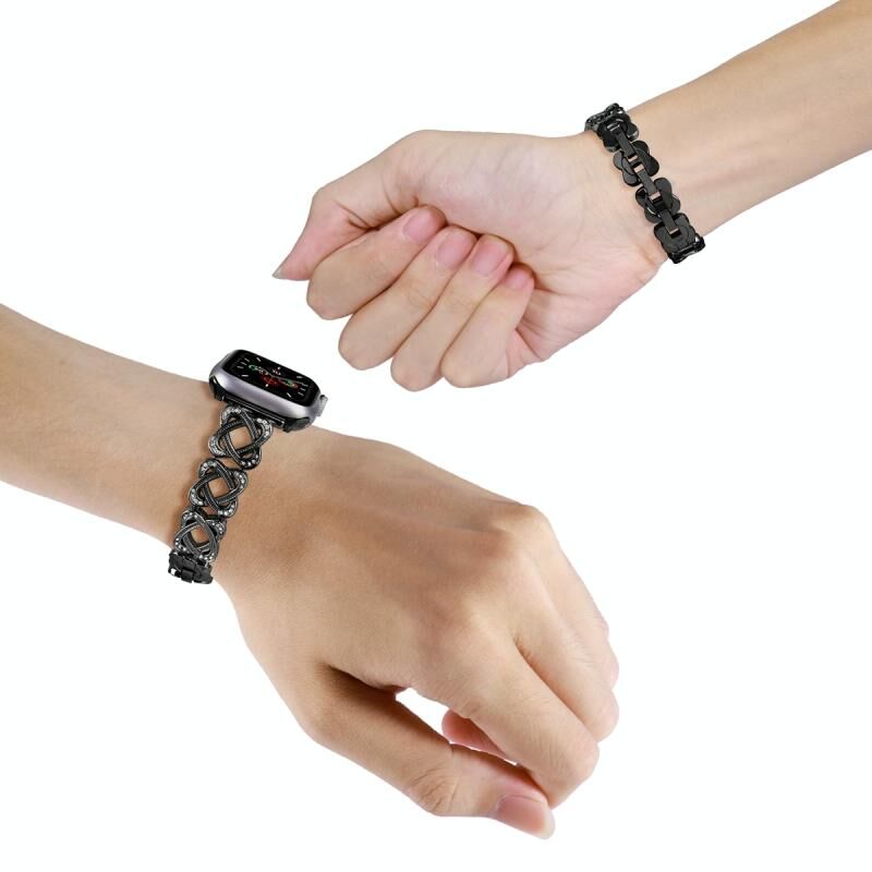 Για Apple Watch Ultra 49mm Hearts Crossed Διαμαντένιο Μεταλλικό Μπρατσέλι (Μαύρο)