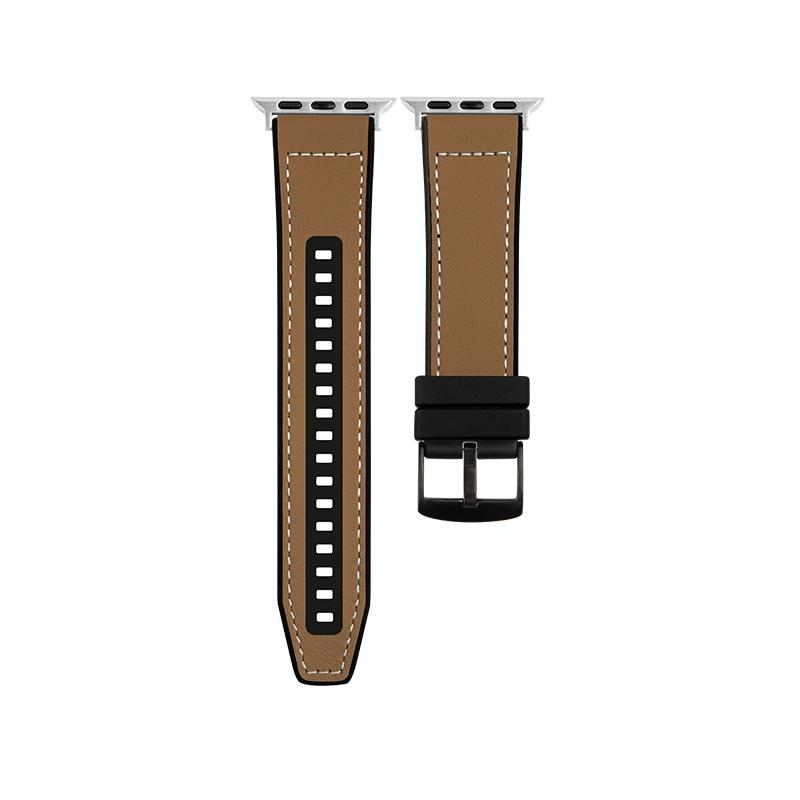 For Apple Watch Ultra 49mm Hybrid Leather Silicone Watch Band(Brown)