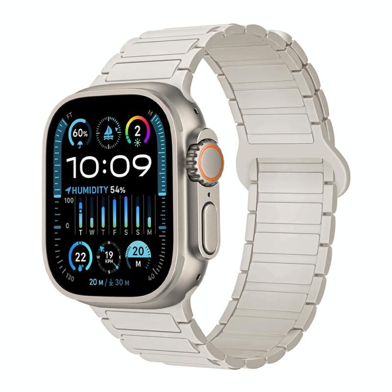Για Apple Watch Ultra 49mm Μαγνητικό Σιλικόνης Στενό Λουράκι σε Σχήμα I (Αστρικό Φως)