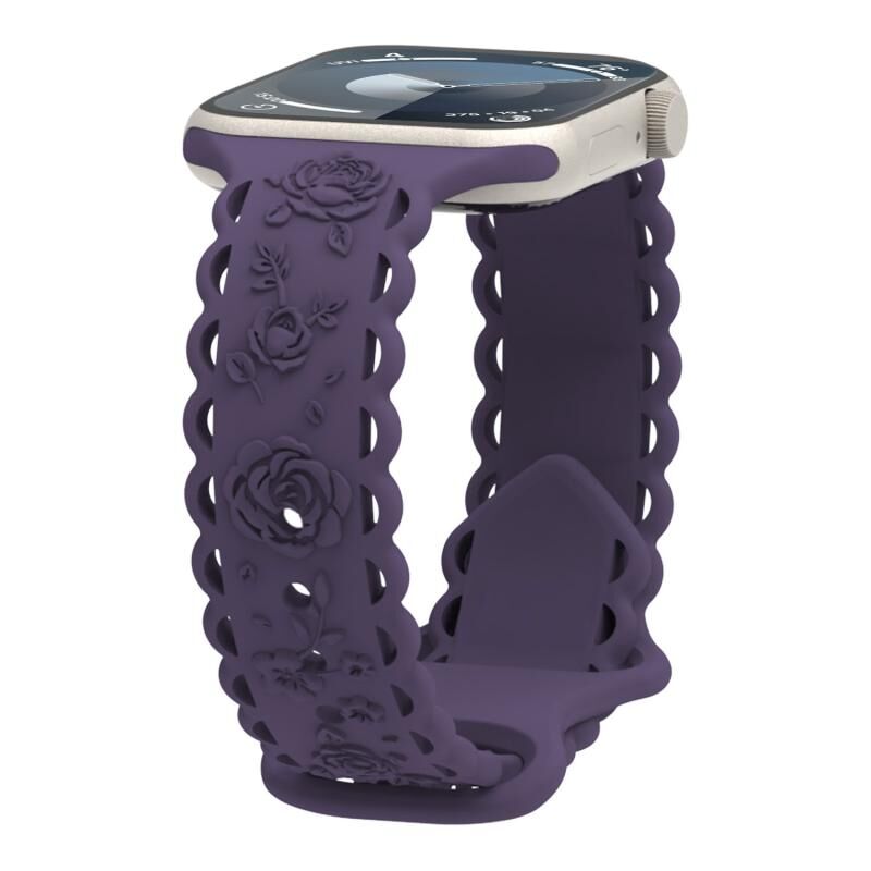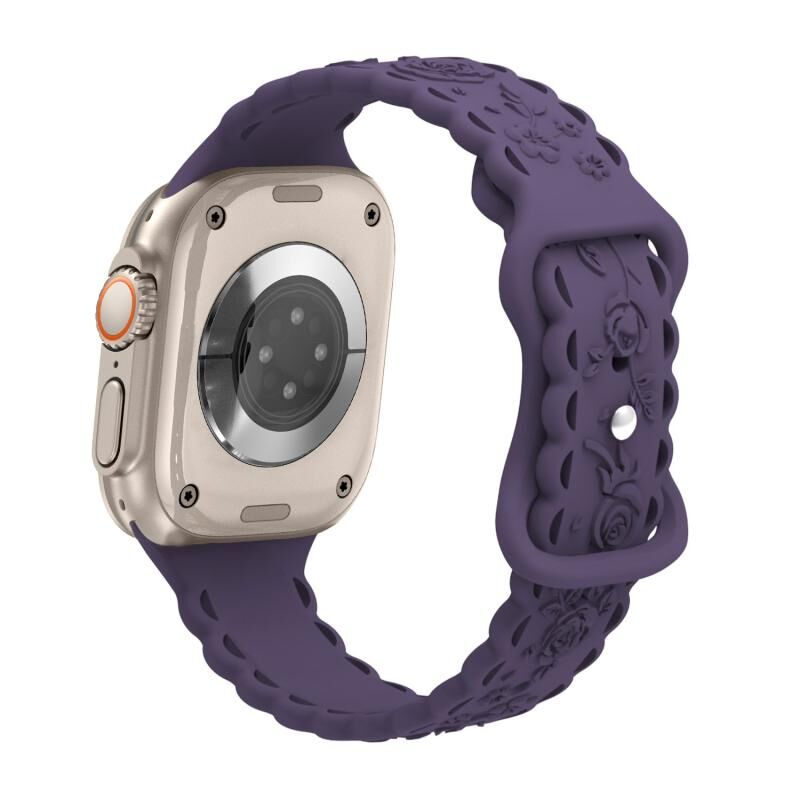 Για Apple Watch Ultra 49mm Λουρί Σιλικόνης με ανάγλυφο σχέδιο 3D τριαντάφυλλου (ρόδινο)
