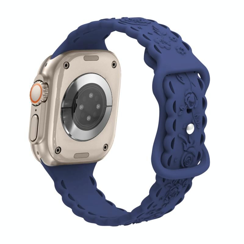 Για Apple Watch Ultra 49mm Δαντέλα 3D Ροζ Χαραγμένο Λουράκι Σιλικόνης (Ναυτικό μπλε)