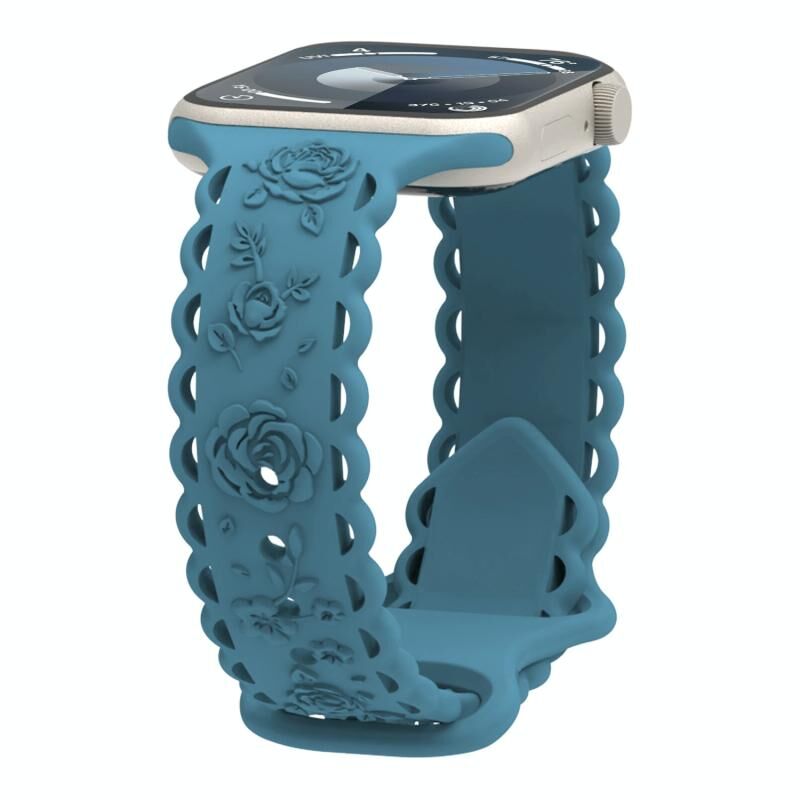 Για Apple Watch Ultra 49mm Δαντέλα 3D Ροζ Χαραγμένο Λουράκι Σιλικόνης (Πράσινο πεύκου)