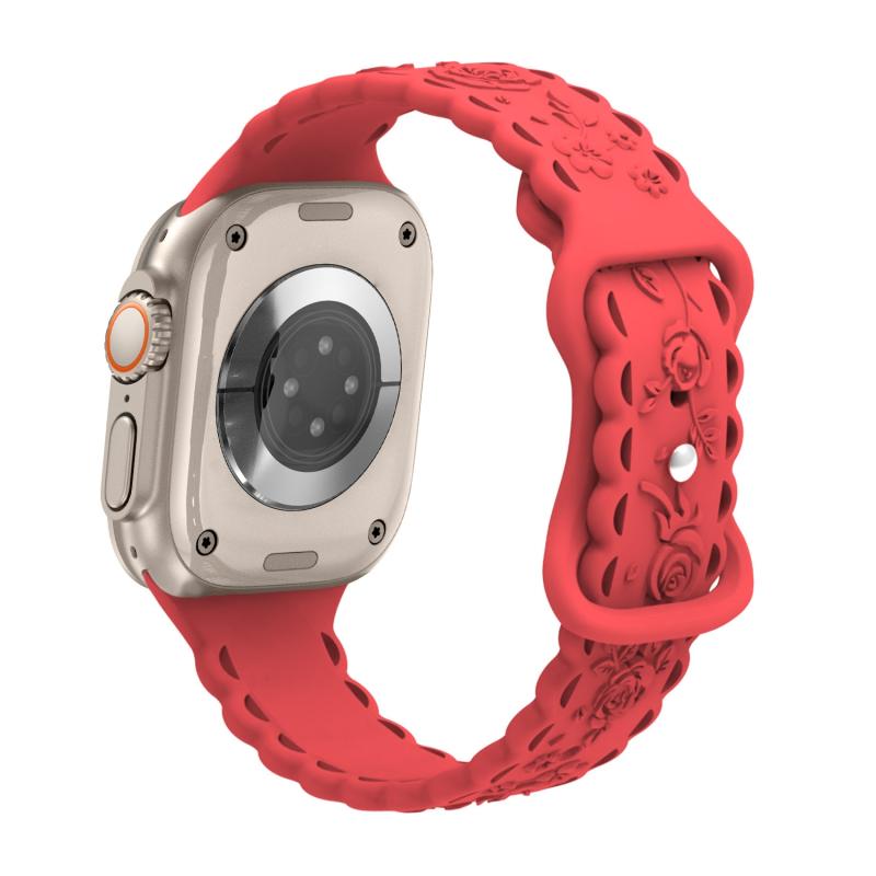 Για Apple Watch Ultra 49mm Δαντέλα 3D Ροζ Χαραγμένο Λουράκι Σιλικόνης (Μαύρο)