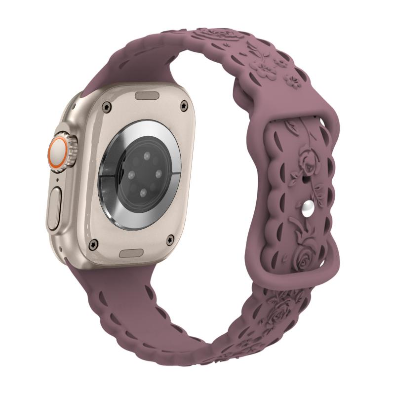 For Apple Watch Ultra 49mm Lace 3D Rose Embossed Silicone Watch Band(Smoky Purple)