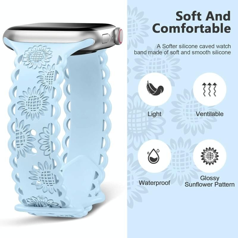 Για Apple Watch Ultra 49mm Λουρί Σιλικόνης με Δαντέλα και Χαραγμένο Ηλιοτρόπιο (Ανοιχτό μπλε)